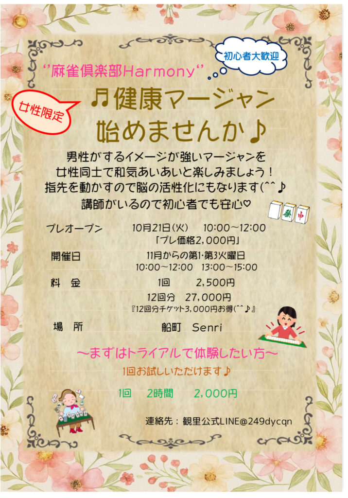 女性限定の健康麻雀倶楽部です。